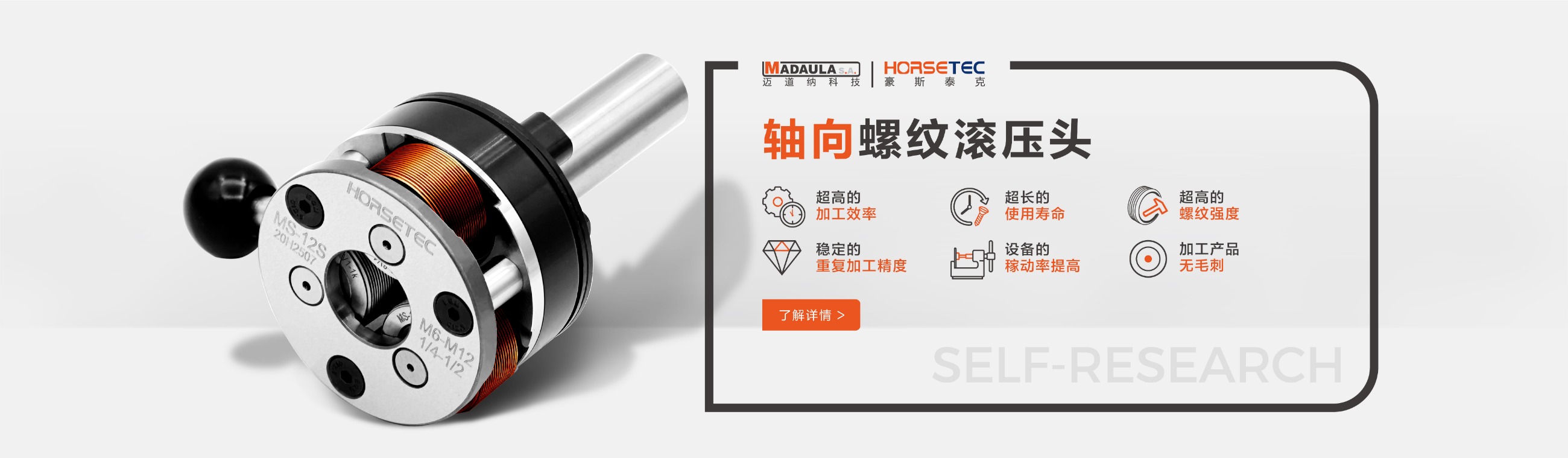 很多做機械的對螺紋滾壓頭都不陌生,它的功能和優(yōu)勢也是有口皆碑的,所以現在有越來越多的人愿意選擇HORSETEC螺紋滾壓工具來滾壓螺紋,而我們常見到的螺紋滾壓工具是采用鋼材料制作而成的一種滾螺紋加工工具,成功沿襲傳統(tǒng)的螺紋滾壓頭的所有優(yōu)勢,比如高效率、高精度、高強度,除此之外,螺紋滾壓頭可以定制您的專屬logo,不僅有效提升了產品的檔次,給使用者帶來不錯利益。今天要給大家說一說高質量的螺紋滾2022-09-13